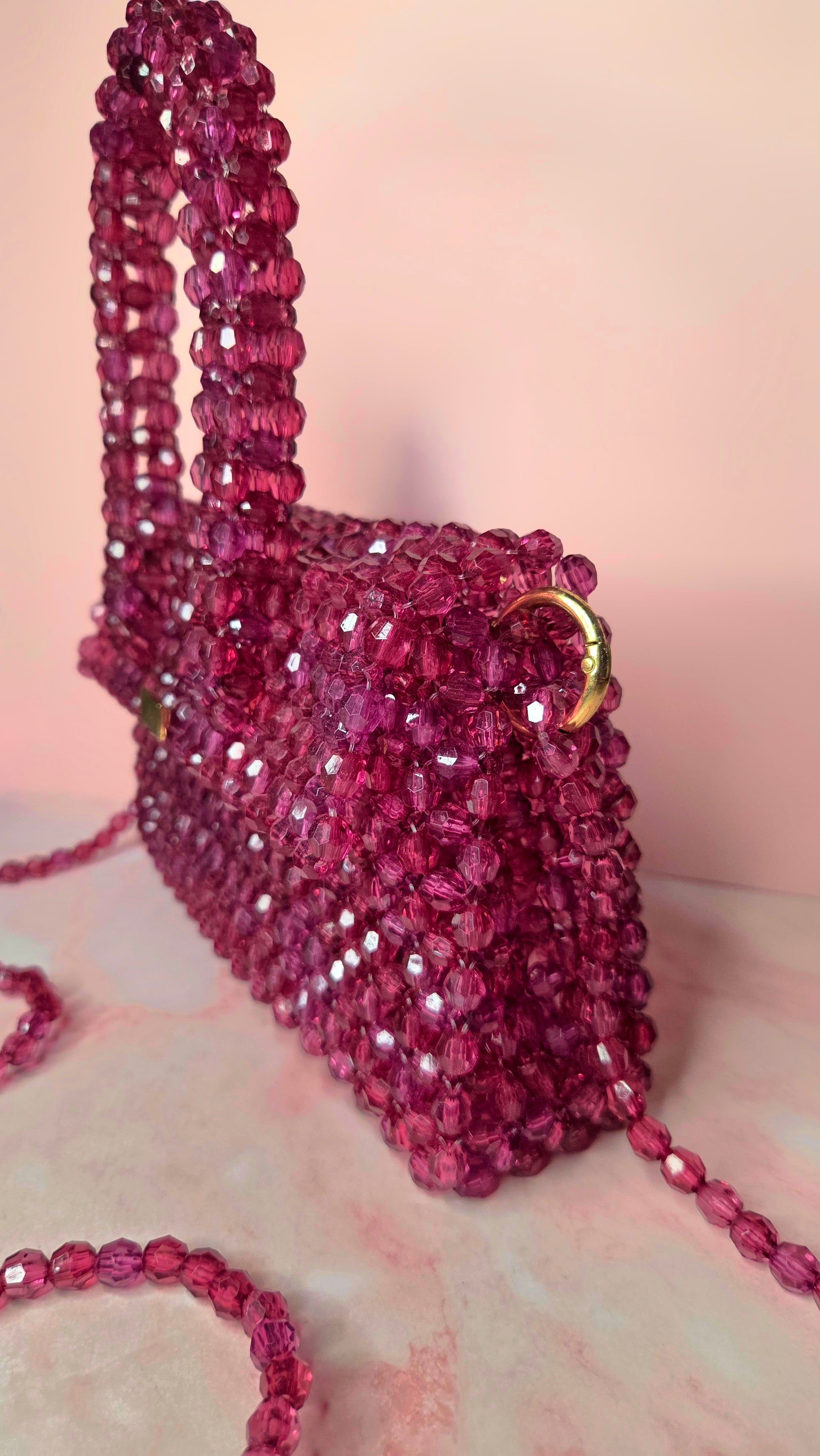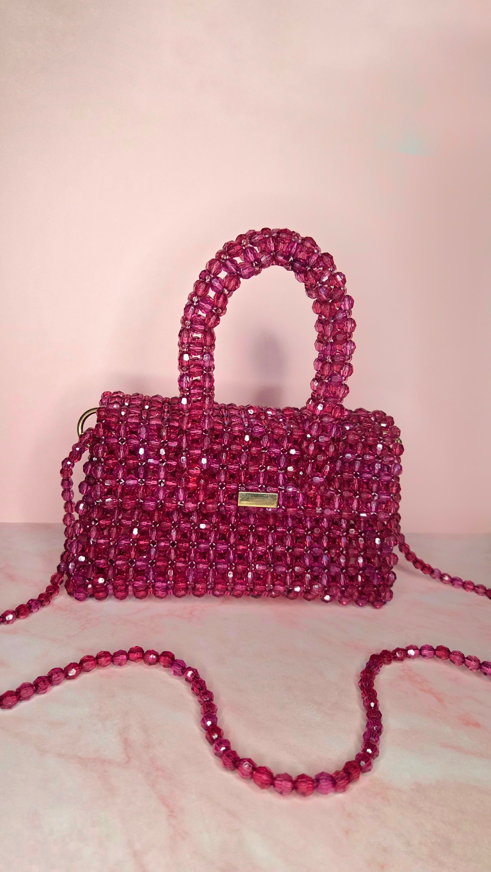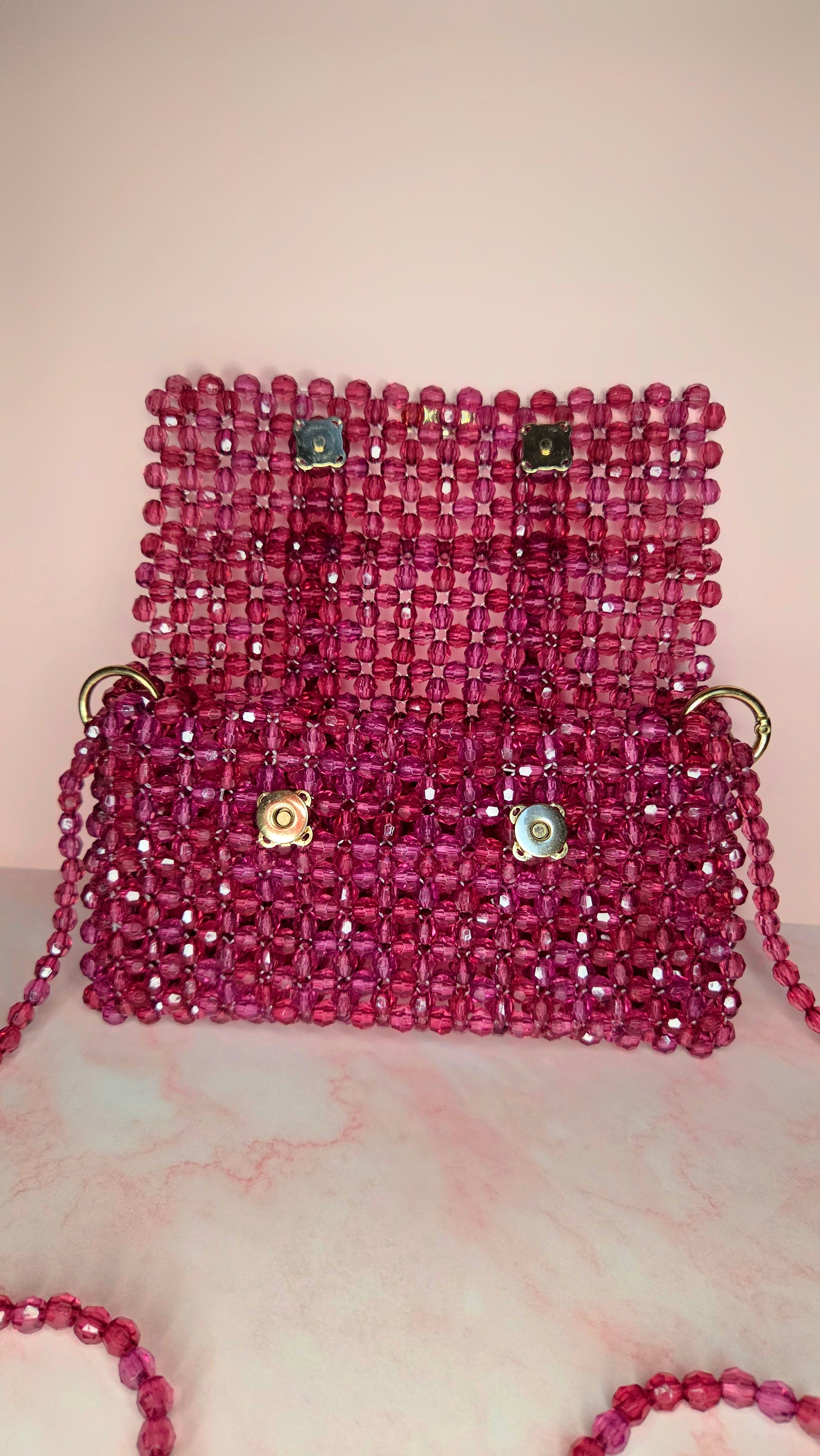 Denna mediumstora pärlväska i en djup, mörklila nyans är en omedelbar blickfångare! Den är designad för att enkelt anpassas: bär den elegant i handen, över axeln för en klassisk look, eller som en crossbody för fria händer. Storleken är optimal - den rymmer din mobiltelefon och allt du behöver för en kväll på stan. Ett modernt val för dig som älskar flexibilitet och färg!