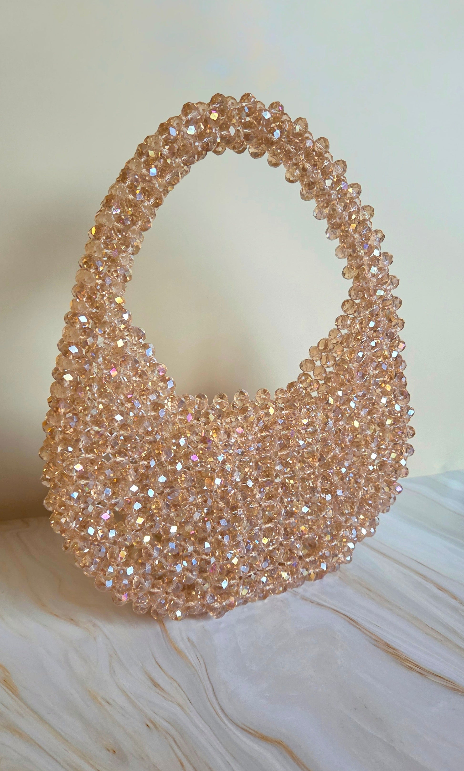 Möt Aurora Glace, accessoaren som fångar festens hela ljus och glans. Denna exklusiva clutch är ett rent konstverk, tillverkad i premium glaskristall som ger en tyngd och lyster som inte går att jämföra.